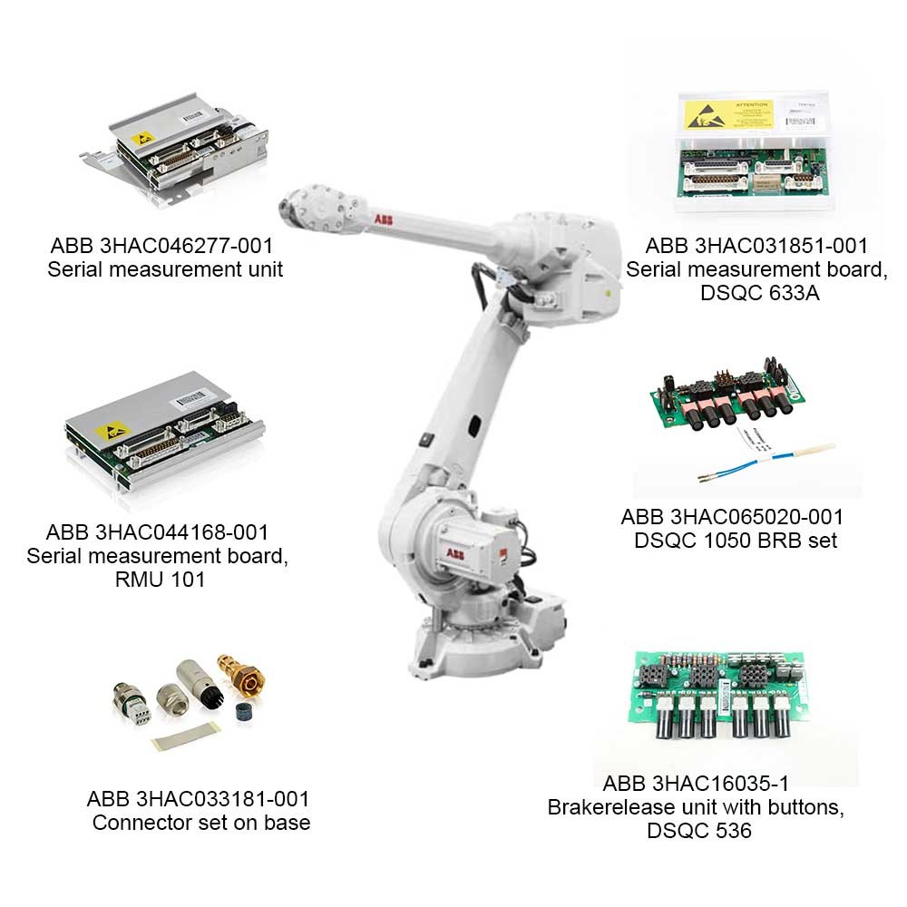 Robot motor, reducer, drive, teach pendant, power supply, wrist, controller, I/O, cables, spare parts, disk drive replacement units, robot protective covers, tool changers, and grippers hose/cable packages.